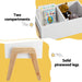 - Two compartments are good for storing books, toys, and clothes