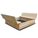 What sets our Strongbox XL apart is its clever dual-purpose design. The foldable wooden lids transform into two comfy bench seats, giving little ones a place to sit and rest—or a spot for grown-ups to join in the fun. When playtime ends, simply fold the seats down to create a secure lid, keeping the sand clean and protected from the elements. Built with reinforced wooden backrests, metal hinges, and natural high-heat-treated timber, our sandpit is durable, eco-friendly, and resistant to rot and decay.