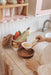 Designed for aspiring young chefs, our delightful playset is the perfect recipe for an exciting imaginative play. Made out of Mahogany wood and beeswax finish, each piece in our cookware set mimics the real thing and is non-toxic which keeps your child safe.