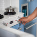 This realistic L-shape kitchen setup will complement your home with its berry blue colour and modern terrazzo worktop. Inspire hours of cooking fun with the light-up and sound hobs, accompanied by a light-up extractor fan and microwave oven. The removable sink, with turning tap handles, is perfect for washing up and is easy to clean after a day of play.