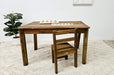 Accompanying the table, you will find two standard chairs designed for comfort and support, perfectly sized for young learners. These chairs, like the table, are crafted from the same durable acacia hardwood, ensuring a cohesive and stylish look.